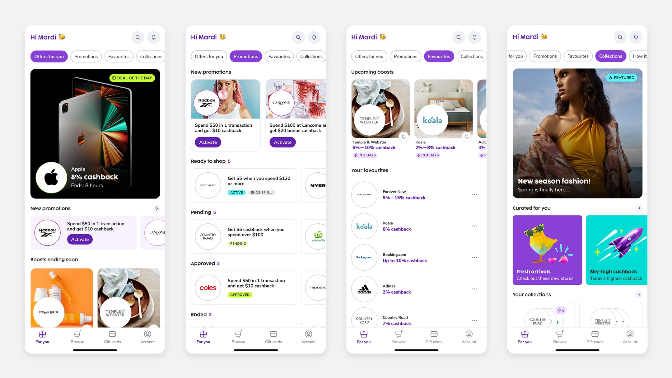 For You was launched as a personalised hub for members to track their promotions, add favourite merchants and browse curated offer collections. 6 months after launch we reviewed data and survey insights to look at how we could deepen personalisation and boost offers discoverability to increase conversion leading up to our peak retail season.