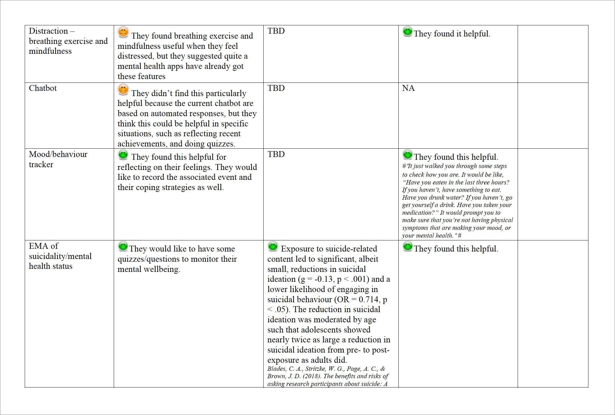Users wanted to have features/tools recommended to them depending on their needs or situation (eg, level of distress, history of suicide or trauma)