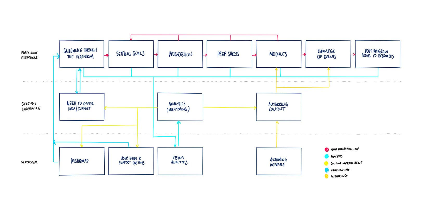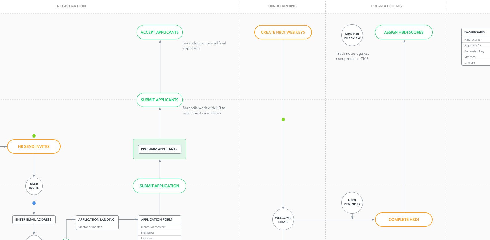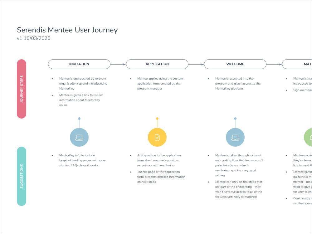 4 key user journeys need to be considered - Serendis, HR, mentors and mentees