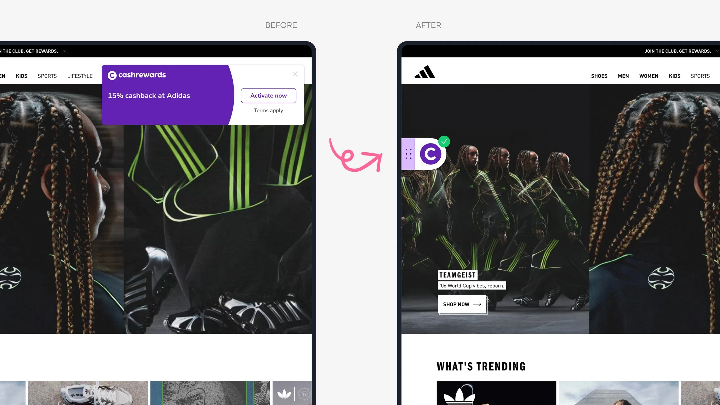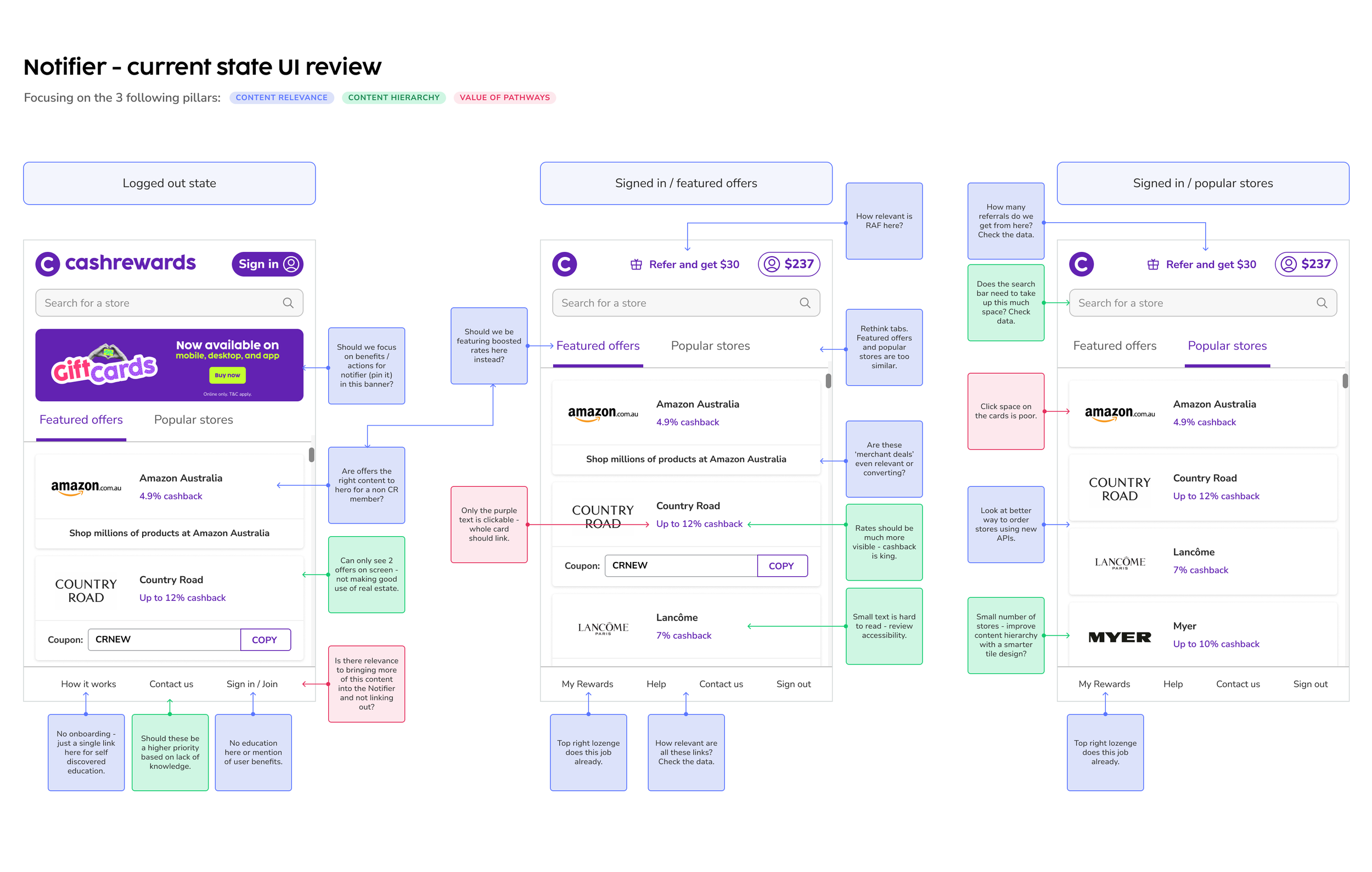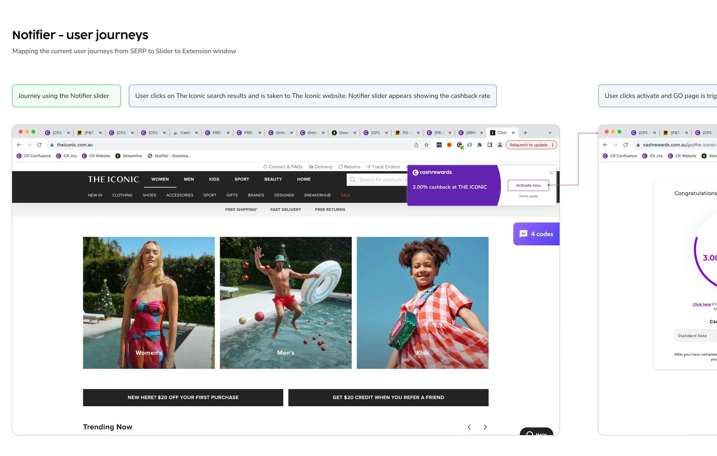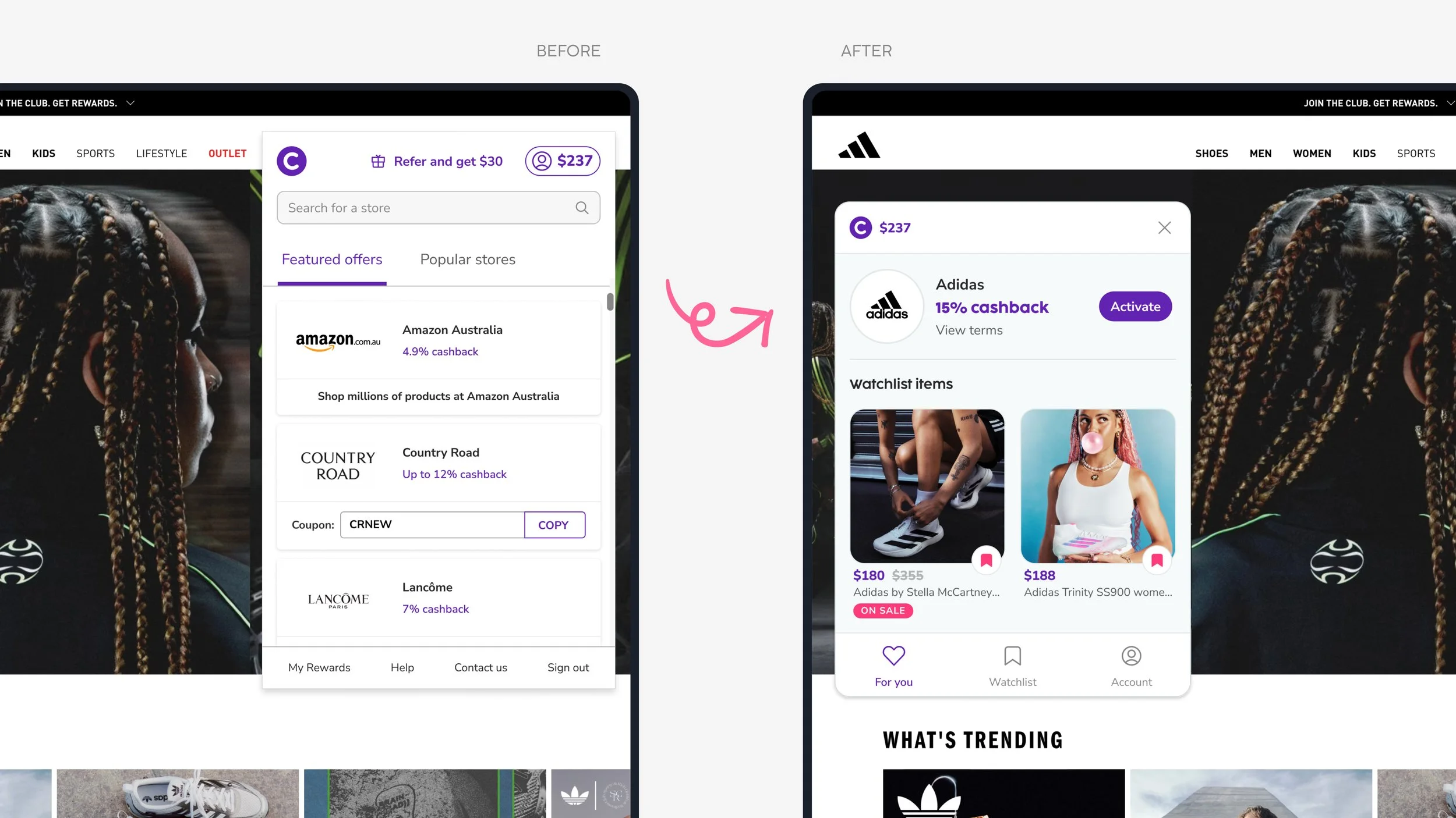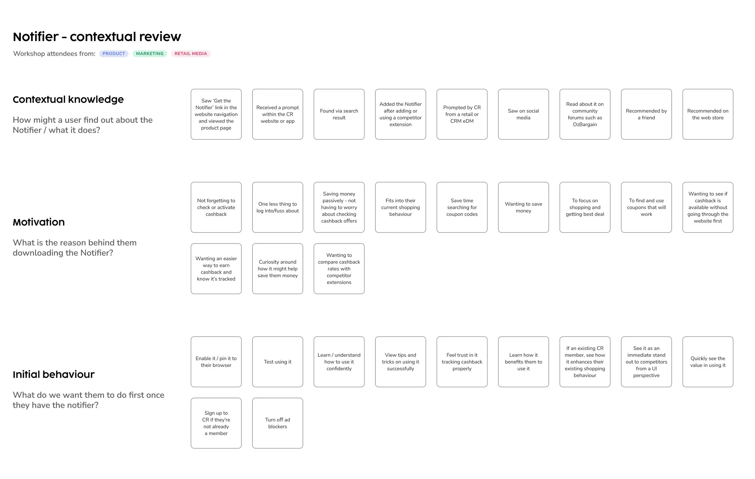 Cashrewards Notifier is a savvy shopping assistant that reminds members when cashback is available as they’re shopping online. Although a high converting channel it had taken a back seat to the app and website and there was opportunity to enhance this beloved member product.